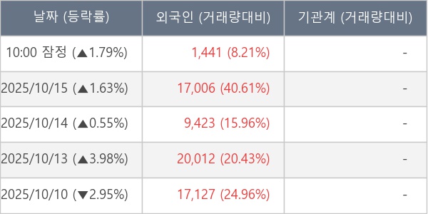 [표] 외국인ㆍ기관 순매매량 (단위 주)