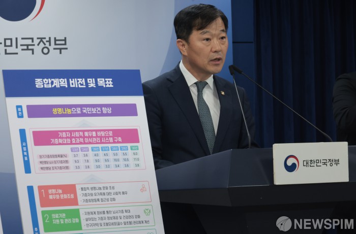 [서울=뉴스핌] 이길동 기자 = 이형훈 보건복지부 제2차관이 16일 오전 서울 종로구 정부서울청사에서 제1차 장기 등 기증 및 이식 종합계획 브리핑을 하고 있다. 2025.10.16 gdlee@newspim.com