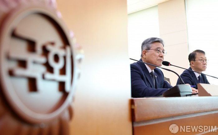 [서울=뉴스핌] 정일구 기자 = 허민 국가유산청장이 16일 서울 여의도 국회 문화체육관광위원회에서 열린 국가유산청 등에 대한 국정감사에서 의원 질의를 경청하고 있다. 2025.10.16 mironj19@newspim.com