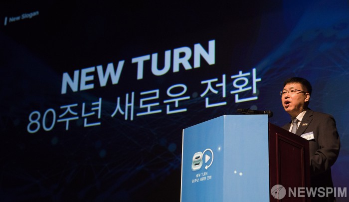 [서울=뉴스핌] 권석민 국립중앙과학관장이 16일 오전 대전광역시 유성구 국립중앙과학관에서 열린 '국립중앙과학관 80주년 기념식'에서 국립중앙과학관 비전 발표를 하고 있다. [사진=과학기술정보통신부] 2025.10.16 photo@newspim.com