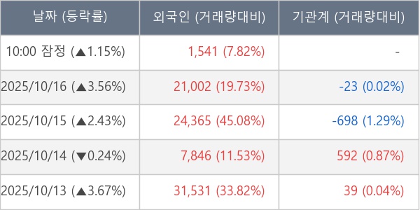 [표] 외국인ㆍ기관 순매매량 (단위 주)