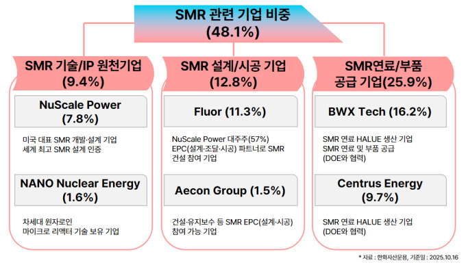 최영진 한화자산운용 최고마케팅책임자(CMO)는 "야누스 프로젝트는 미국 정부가 SMR을 단순한 기술 실험이 아닌 국가 차원의 에너지 안보 인프라로 본격 육성하겠다는 신호탄"이라며 "SMR의 기술과 지식재산권을 보유한 뉴스케일파워뿐 아니라, 실제 SMR 건설을 주도하는 EPC 전문기업 플루오르, 초소형 원자로 등 핵심 기기를 제조하는 BWX테크놀로지, 고농축우라늄 등 연료를 독점 공급하는 센트러스에너지 등 밸류체인 전반의 기업에도 주목할 필요가 있다"고 말했다.