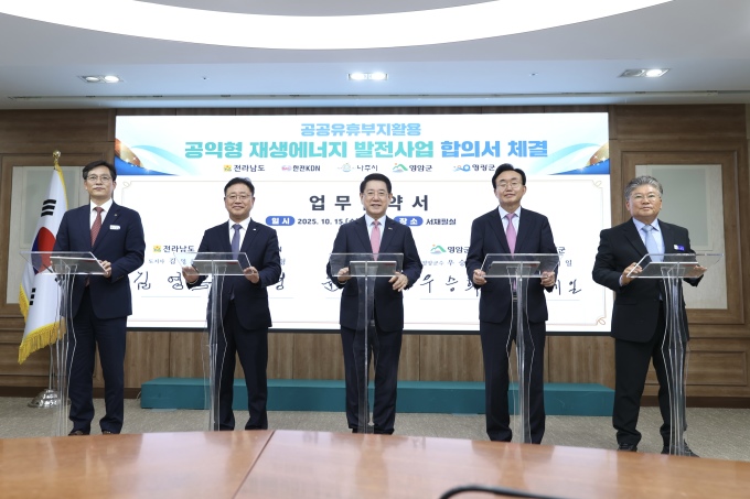 [영암=뉴스핌] 조은정 기자 = 전남 영암군은 전남도청에서 전남도, 나주시, 영광군, 한전KDN과 '공공 유휴부지 활용 공익형 재생에너지 발전사업' 업무협약을 체결했다고 19일 밝혔다.