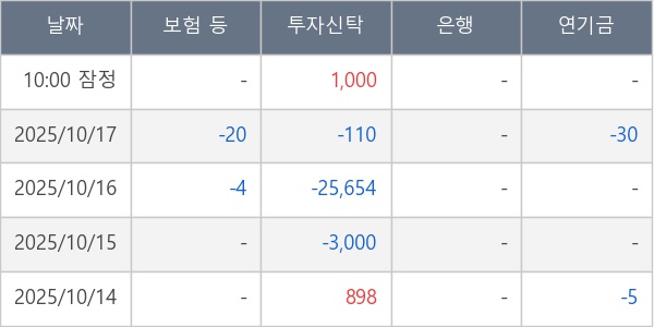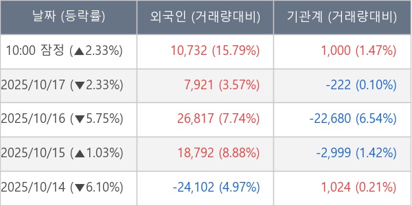 [표] 주요 기관별 순매매량 (단위 주)