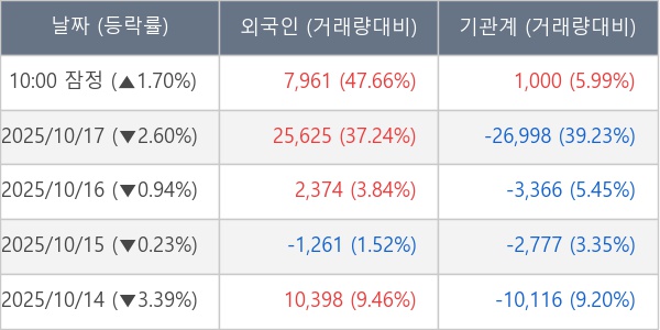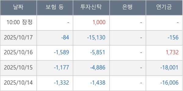 [표] 주요 기관별 순매매량 (단위 주)