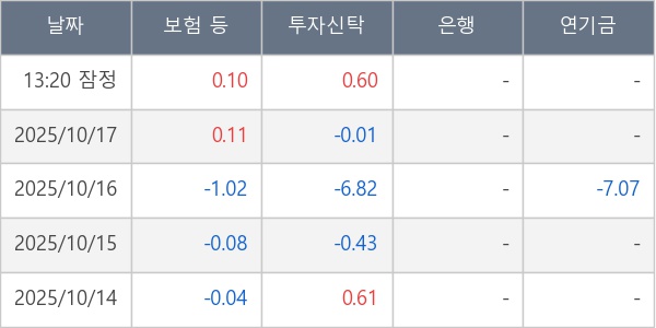 ※ 장중 매매동향은 잠정치이므로 실제 매매동향과 차이가 발생할수 있음