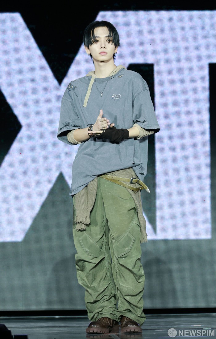 [서울=뉴스핌] 김학선 기자 = 그룹 보이넥스트도어 명재현이 20일 서울 강서구 KBS아레나에서 열린 미니 5집 ‘The Action’ 쇼케이스에서 포즈를 취하고 있다. 2025.10.20 yooksa@newspim.com