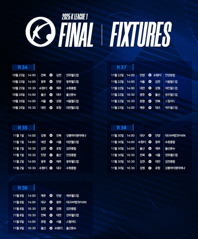 [서울=뉴스핌] 장환수 스포츠전문기자= K리그1 2025 파이널 라운드 일정. [사진=한국프로축구연맹] 2025.10.20 zangpabo@newspim.com |