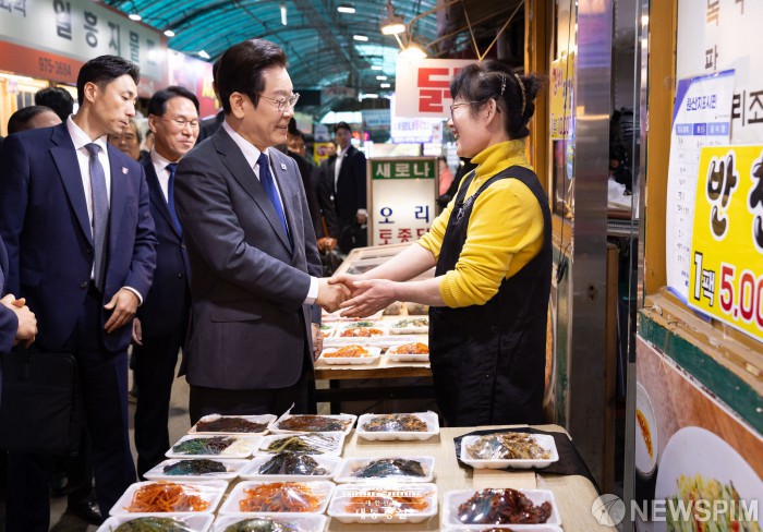시장 상인 만나는 이재명 대통령