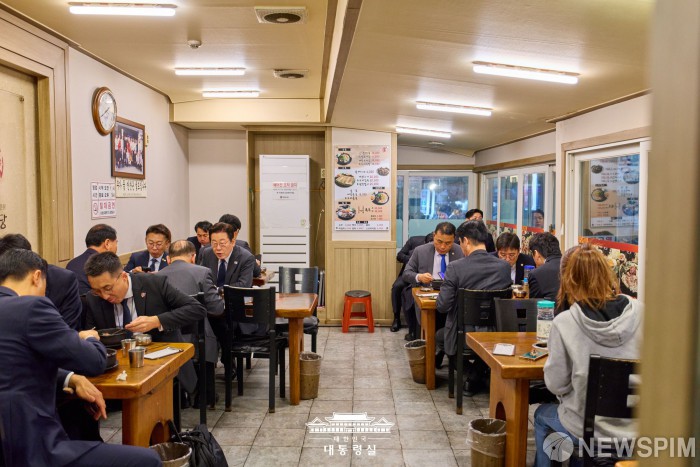 [서울=뉴스핌] 이재명 대통령이 20일 경기도 고양시 일산서구 일산시장을 찾아 오찬을 하고 있다. [사진=대통령실] 2025.10.20 photo@newspim.com