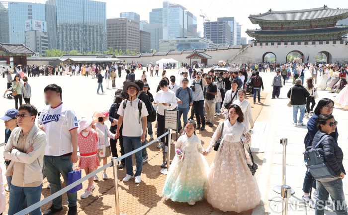 [서울=뉴스핌] 이호형 기자 = 봄 궁중문화축전이 경복궁서 열린 가운데 시민들과 외국관광객들이 경복궁으로 입장하고 있다. leemario@newspim.com |