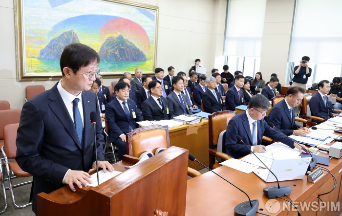 [서울=뉴스핌] 정일구 기자 = 이찬진 금융감독원장이 21일 오전 서울 여의도 국회 정무위원회에서 열린 금융감독원 등에 대한 국정감사에서 업무보고를 하고 있다. 2025.10.21 mironj19@newspim.com