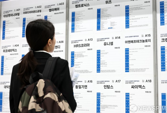 [서울=뉴스핌] 최지환 기자 = 21일 서울 강서구 코엑스 마곡에서 열린 민관합동 상생협력 채용박람회에서 구직자들이 채용공고를 살펴보고 있다. 2025.10.21 choipix16@newspim.com