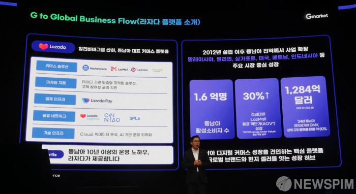 [서울=뉴스핌] 양윤모 기자 = 이민기 G마켓 Seller Growth담당이 21일 서울 강남구 코엑스 오디토리움에서 열린 ‘G마켓 미디어데이’ 행사장에서 해외판로 확대 및 수출지원에 대해 설명하고 있다. 2025.10.21 yym58@newspim.com