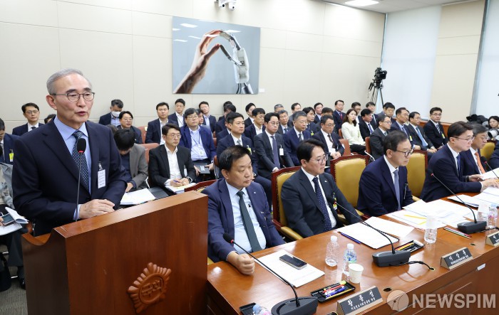 [서울=뉴스핌] 정일구 기자 = 김영섭 KT 대표가 21일 오후 서울 여의도 국회 과학기술정보방송통신위원에서 열린 정보통신산업진흥원 등에 대한 국정감사에서 의원 질의에 답하고 있다. 2025.10.21 mironj19@newspim.com