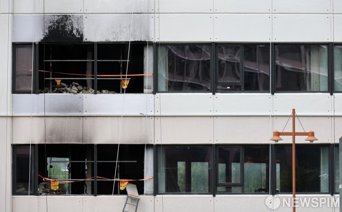 [서울=뉴스핌] 최지환 기자 = 21일 오후 서울 중구 서울광장 인근 서울센터빌딩이 이날 오전 발생한 화재로 그을려 있다. 2025.10.21 choipix16@newspim.com