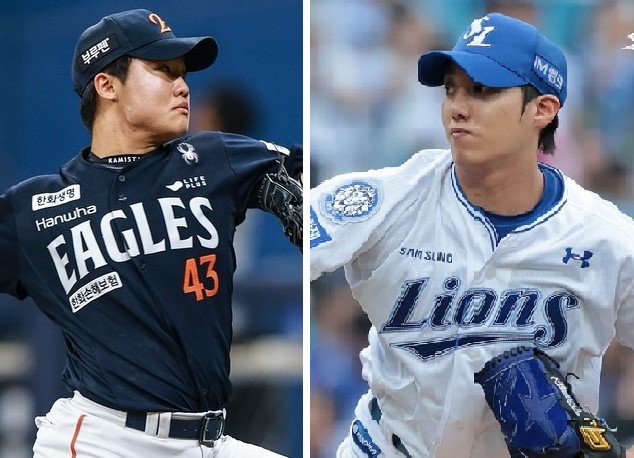 정우주(왼쪽)와 원태인. [사진=한화, 삼성] |