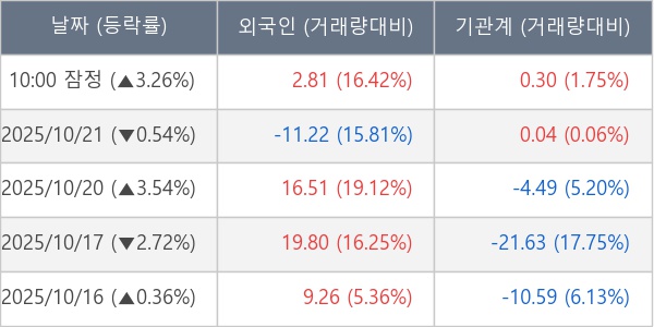 [표] 외국인ㆍ기관 순매매량 (단위 만주)