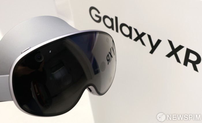 [서울=뉴스핌] 김학선 기자 = 삼성전자가 22일 오전 서울 서초구 삼성 강남에서 구글과 공동 개발한 확장현실(XR) 헤드셋 '갤럭시 XR' 미디어 공개행사를 열었다. 행사장에 제품이 전시되어 있다. 2025.10.22 yooksa@newspim.com