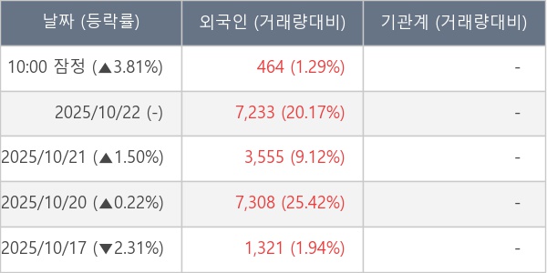 [표] 외국인ㆍ기관 순매매량 (단위 주)