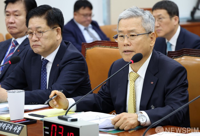 [서울=뉴스핌] 정일구 기자 = 김동철 한국전력공사 사장이 23일 서울 여의도 국회 기후에너지환경노동위원회에서 열린 국정감사에서 의원 질의에 답하고 있다. 2025.10.23 mironj19@newspim.com