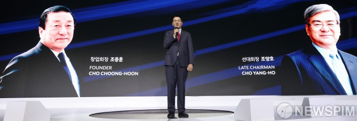 [서울=뉴스핌] 최지환 기자 = 조원태 한진그룹 회장이 23일 오후 서울 용산구 그랜드하얏트 서울에서 열린 한진그룹 80주년 기념식에서 발언하고 있다. 2025.10.23 choipix16@newspim.com