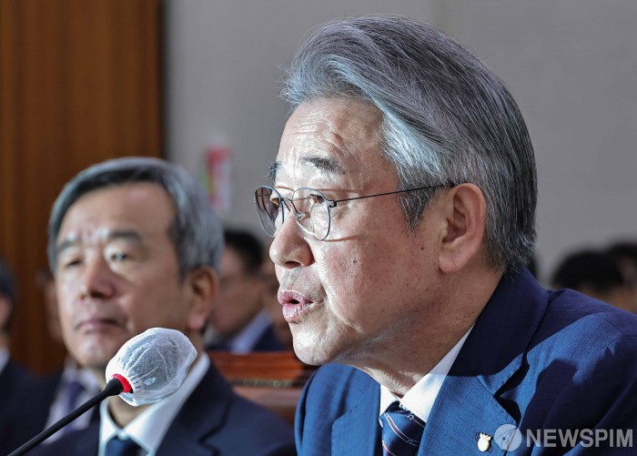 [서울=뉴스핌] 윤창빈 기자 = 강호동 농업협동조합중앙회장이 24일 오전 서울 여의도 국회에서 열린 농림축산해양수산위원회의 농업협동조합중앙회 등에 대한 국정감사에서 의원 질문에 답변하고 있다. 2025.10.24 pangbin@newspim.com