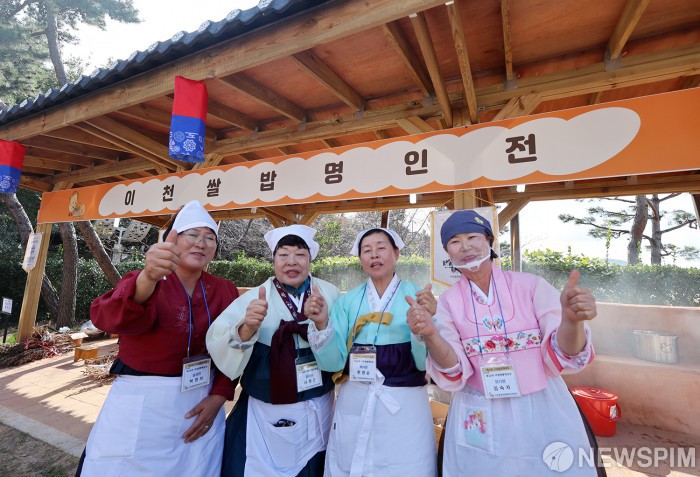 [서울=뉴스핌] 양윤모 기자 =24일 오후 경기도 이천시 이천농업테마공원에서 열린 '제24회 이천쌀문화축제'의 쌀밥명인전에 참가한 각읍면 대표가 시합전 포즈를 취하고 있다. '맛과 멋이 어우러진, 쌀로 잇는 즐거움'이란 주제로 열리는 올해 축제는 다양한 참여 및 체험 행사와 전통 공연 등으로 26일까지 열린다. [사진=이천시청] 2025.10.24 yym58@newspim.com