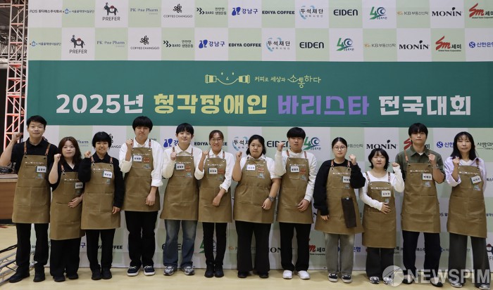 [서울=뉴스핌] 양윤모 기자 = 25일 강남구 일원에코센터에서 이디야커피가 후원한 ‘2025 청각 장애인 바리스타 전국대회’ 참가자들이 기념촬영을 하고 있다. 이디야커피는 전국의 청각장애인 바리스타들이 자신의 실력을 발휘하며 꿈을 실현하고, 자립을 도모할 수 있도록 지원하기 위한 이디야커피의 지속적인 사회공헌 활동의 일환으로 진행했다. [사진=이디야커피] 2025.10.26 yym58@newspim.com