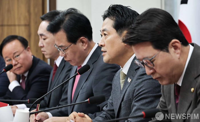 [서울=뉴스핌] 윤창빈 기자 = 장동혁 국민의힘 대표가 27일 오전 서울 여의도 국회에서 열린 최고위원회의에서 모두발언을 하고 있다. 2025.10.27 pangbin@newspim.com