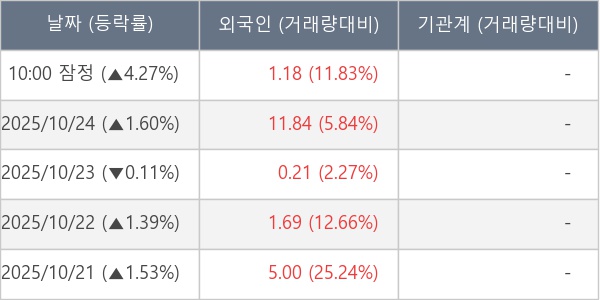[표] 외국인ㆍ기관 순매매량 (단위 만주)