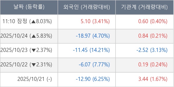 ※ 사모펀드 등 일부 기관의 순매매량은 표시되지 않음