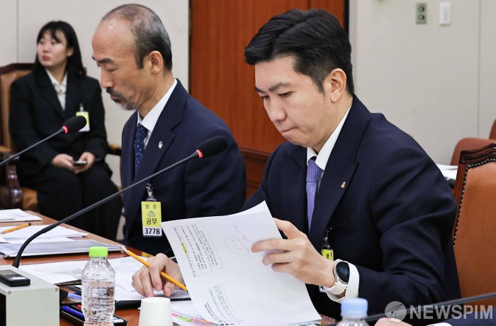 [서울=뉴스핌] 윤창빈 기자 = 유승민 대한체육회장이 27일 서울 여의도 국회에서 열린 문화체육관광위원회의 대한체육회 등에 대한 국정감사에서 자료를 살펴보고 있다. 2025.10.27 pangbin@newspim.com