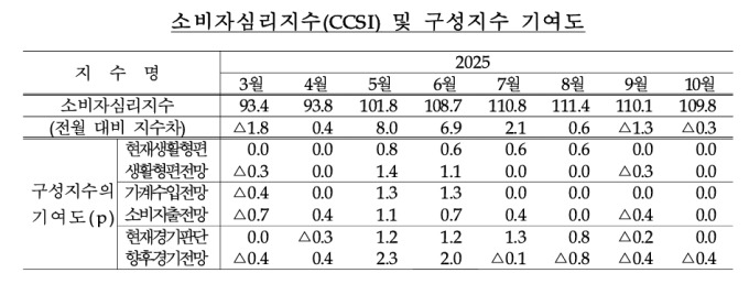 한은 '10월 소비자동향'…경기전망 불투명해지며 CCSI 0.3p↓·109.8