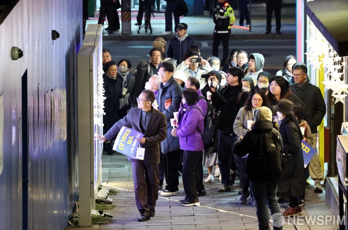 | [서울=뉴스핌] 최지환 기자 = 27일 오후 서울 용산구 녹사평역 앞에서 10.29 이태원 참사 3주기 추모미사를 마치고 참석자들이 참사 현장을 둘러보고 있다. 2025.10.27 choipix16@newspim.com |