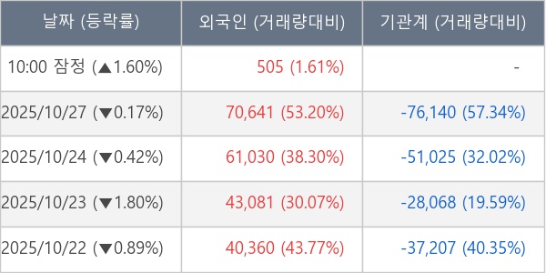 [표] 외국인ㆍ기관 순매매량 (단위 주)