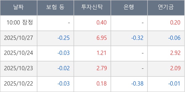 [표] 주요 기관별 순매매량 (단위 만주)