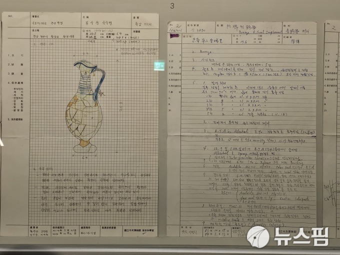 | [서울=뉴스핌] 최문선 기자 = 보존과학자의 방에 있는 기록지. [사진=최문선 기자]2025.10.28 moonddo00@newspim.com |