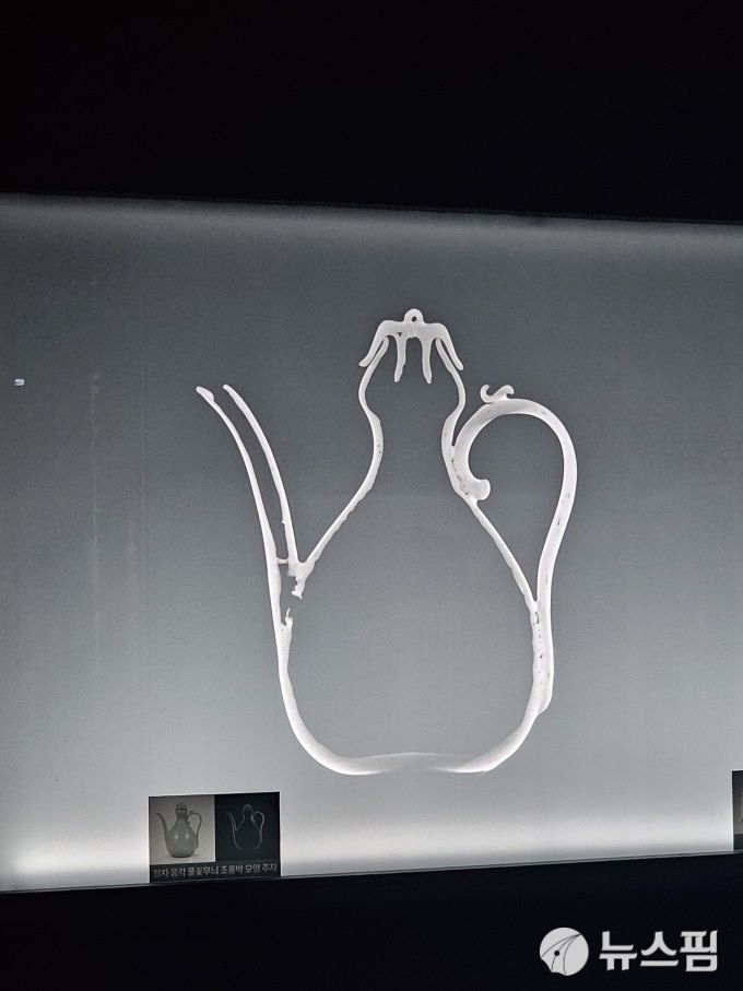 | [서울=뉴스핌] 최문선 기자 = CT 촬영한 청자 음각 풀꽃무늬 조롱박 모양 주자. [사진=최문선 기자] 2025.10.28 moonddo00@newspim.com |