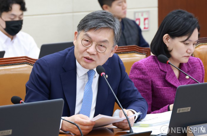 [서울=뉴스핌] 김학선 기자 = 더불어민주당 김윤 의원이 28일 서울 여의도 국회 보건복지위원회에서 열린 한국노인인력개발원, 한국사회보장정보원 등에 대한 국정감사에서 질의하고 있다. 2025.10.28 yooksa@newspim.com