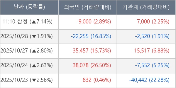 ※ 사모펀드 등 일부 기관의 순매매량은 표시되지 않음