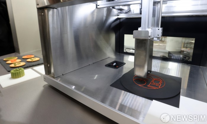 [서울=뉴스핌] 최지환 기자 = 29일 오후 서울 강남구 코엑스에서 열린 2025 푸드위크 코리아에서 3D 식품 프린터가 그림을 출력하고 있다. 2025.10.29 choipix16@newspim.com