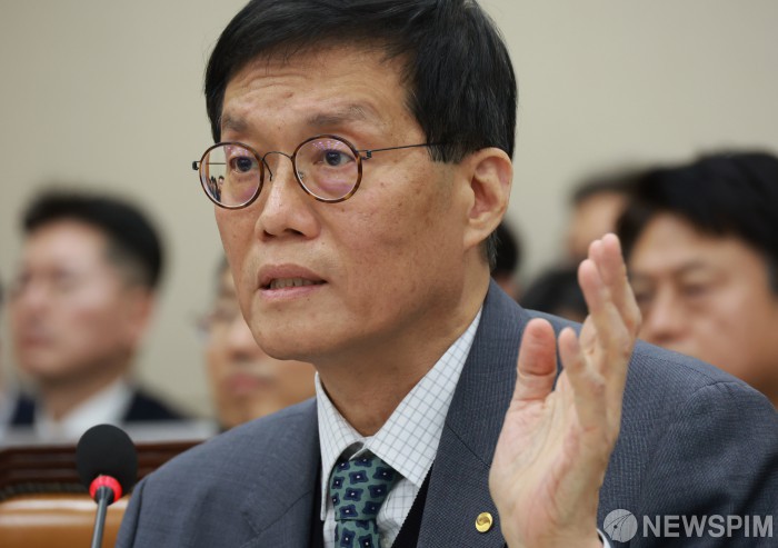 [서울=뉴스핌] 김학선 기자 = 이창용 한국은행 총재가 29일 국회 기획재정위원회에서 열린 한국은행·국세청·관세청 등에 대한 종합감사에서 의원 질의에 답하고 있다. 2025.10.29 yooksa@newspim.com