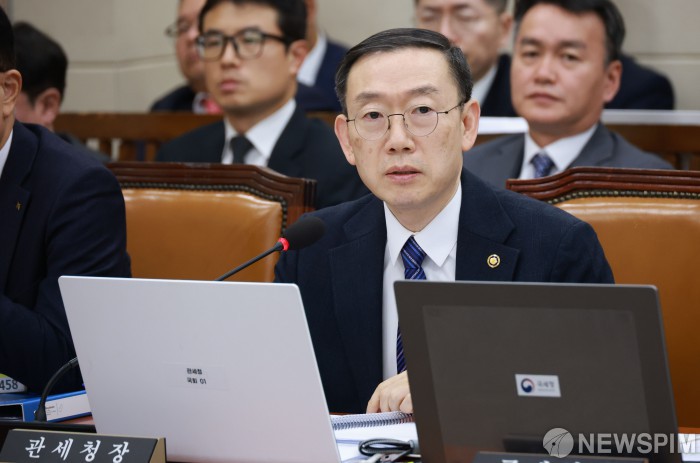 [서울=뉴스핌] 김학선 기자 = 이명구 관세청장이 29일 국회 기획재정위원회에서 열린 한국은행·국세청·관세청 등에 대한 종합감사에서 의원 질의에 답하고 있다. 2025.10.29 yooksa@newspim.com