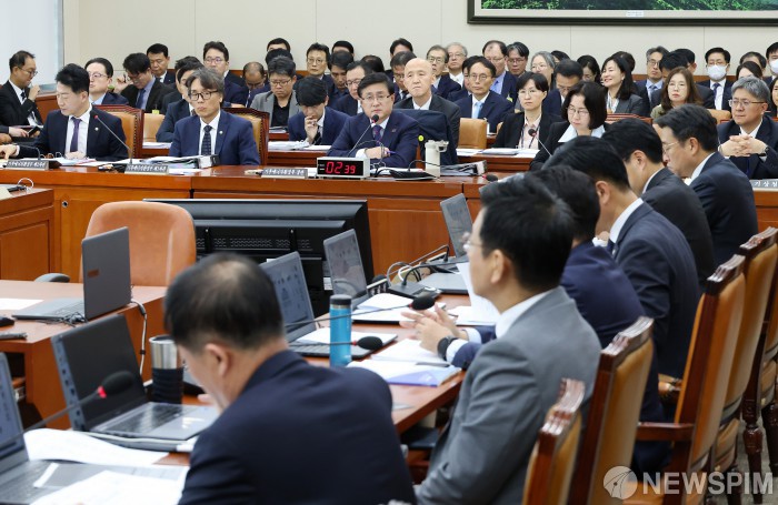 [서울=뉴스핌] 정일구 기자 = 29일 오후 서울 여의도 국회 기후에너지환경노동위원회에서 기후에너지환경부 등에 대한 종합감사가 열리고 있다. 2025.10.29 mironj19@newspim.com