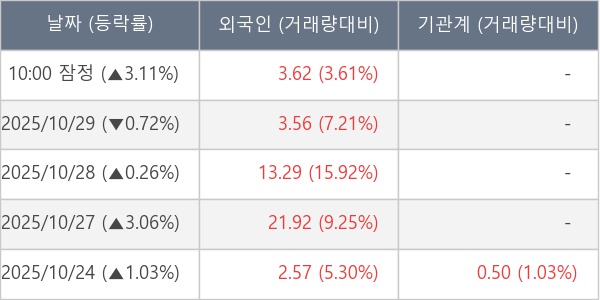 [표] 외국인ㆍ기관 순매매량 (단위 만주)