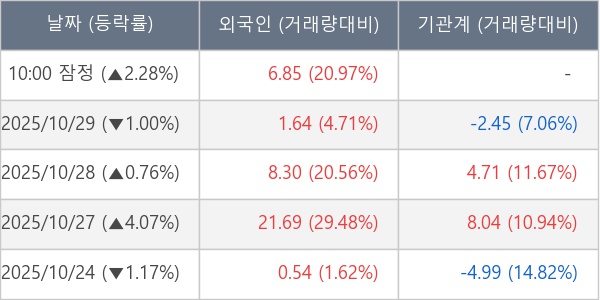 [표] 외국인ㆍ기관 순매매량 (단위 만주)