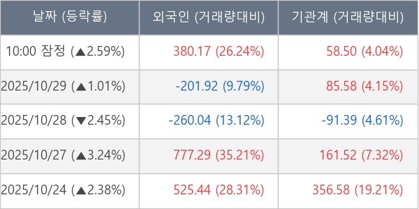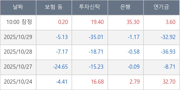[표] 주요 기관별 순매매량 (단위 만주)