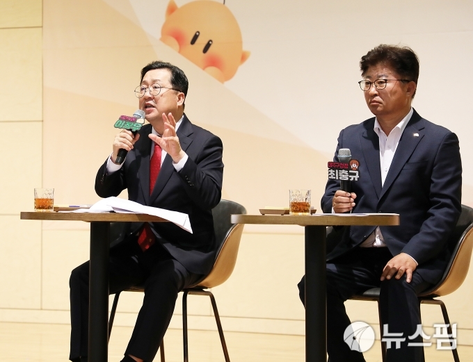 [대전=뉴스핌] 오종원 기자 = 이장우 대전시장(왼쪽)이 30일 한남대 서의필홀에서 열린 '대덕구민과의 만남' 행사에서 구민들의 질의에 답변하고 있다. jongwon3454@newspim.com