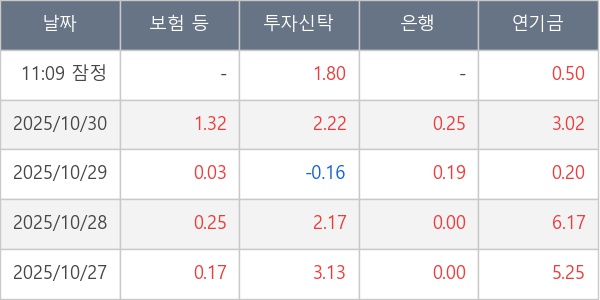※ 사모펀드 등 일부 기관의 순매매량은 표시되지 않음